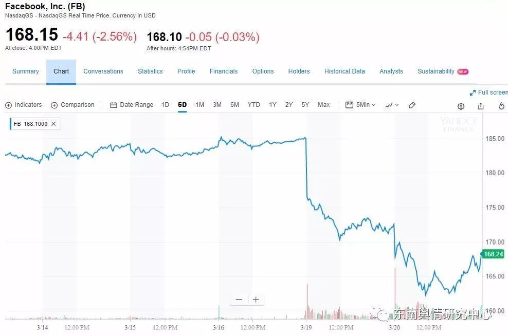 受上周末Facebook泄密門影響,本周一美股開盤深跌。道指盤中跌476點,抹去年內全部漲幅,最終收跌335點。標普500最深跌2%,與道指一起經歷了2月8日跌入技術性盤整區間以來的最大跌幅。納指收跌1.8%,為六周以來最大單日跌幅。